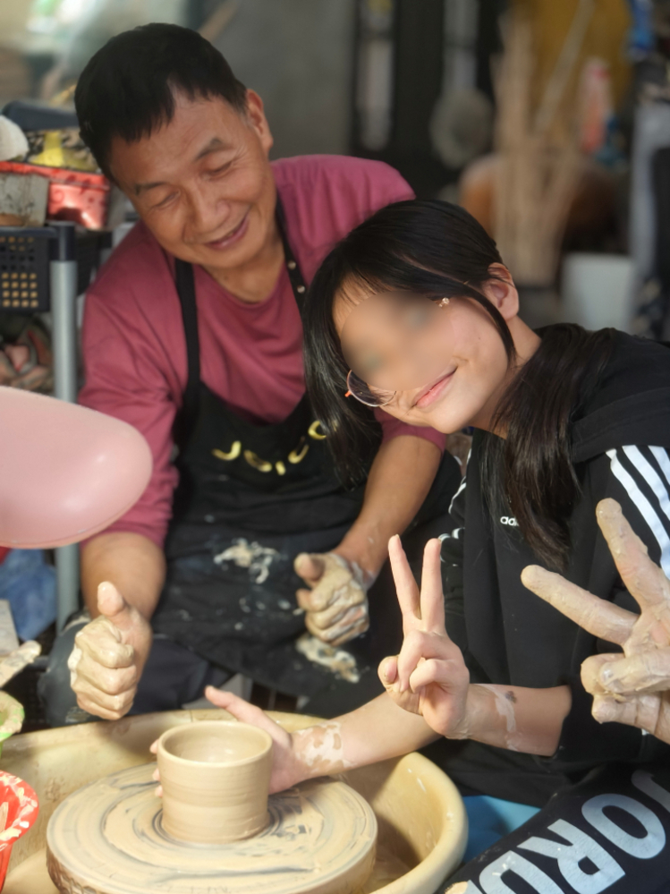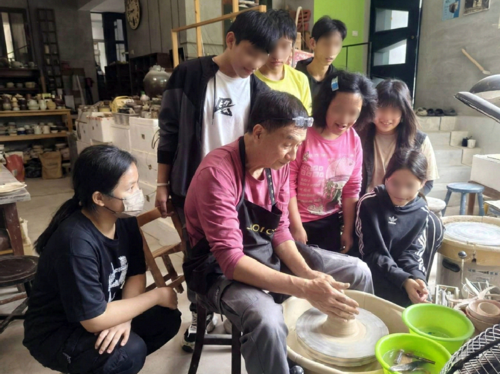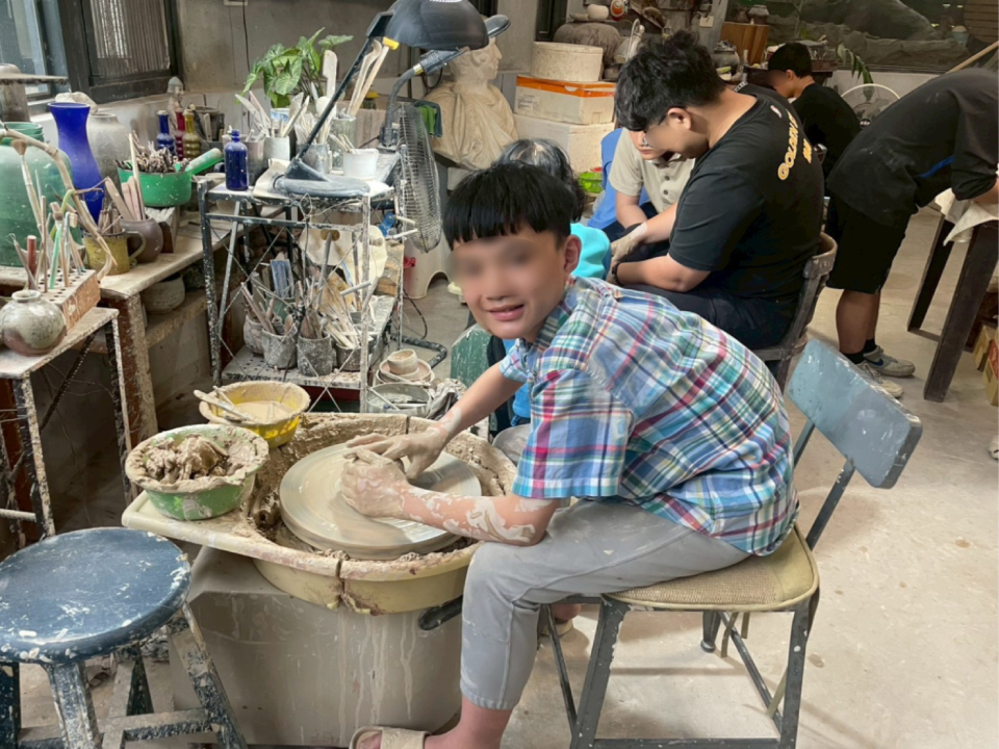 進入拉坏實作時,孩子們才體會到「看人做容易,動手做難」的道理,土塊在指尖歪七扭八的模樣一度讓大家感到挫折。但在師傅耐心引導下,孩子們學會與泥土「培養感情」。看著作品逐漸成形,院生小涔興奮地表示成就感十足。這場指尖上的探索,讓許多孩子埋下了未來繼續挑戰陶藝的種子。
